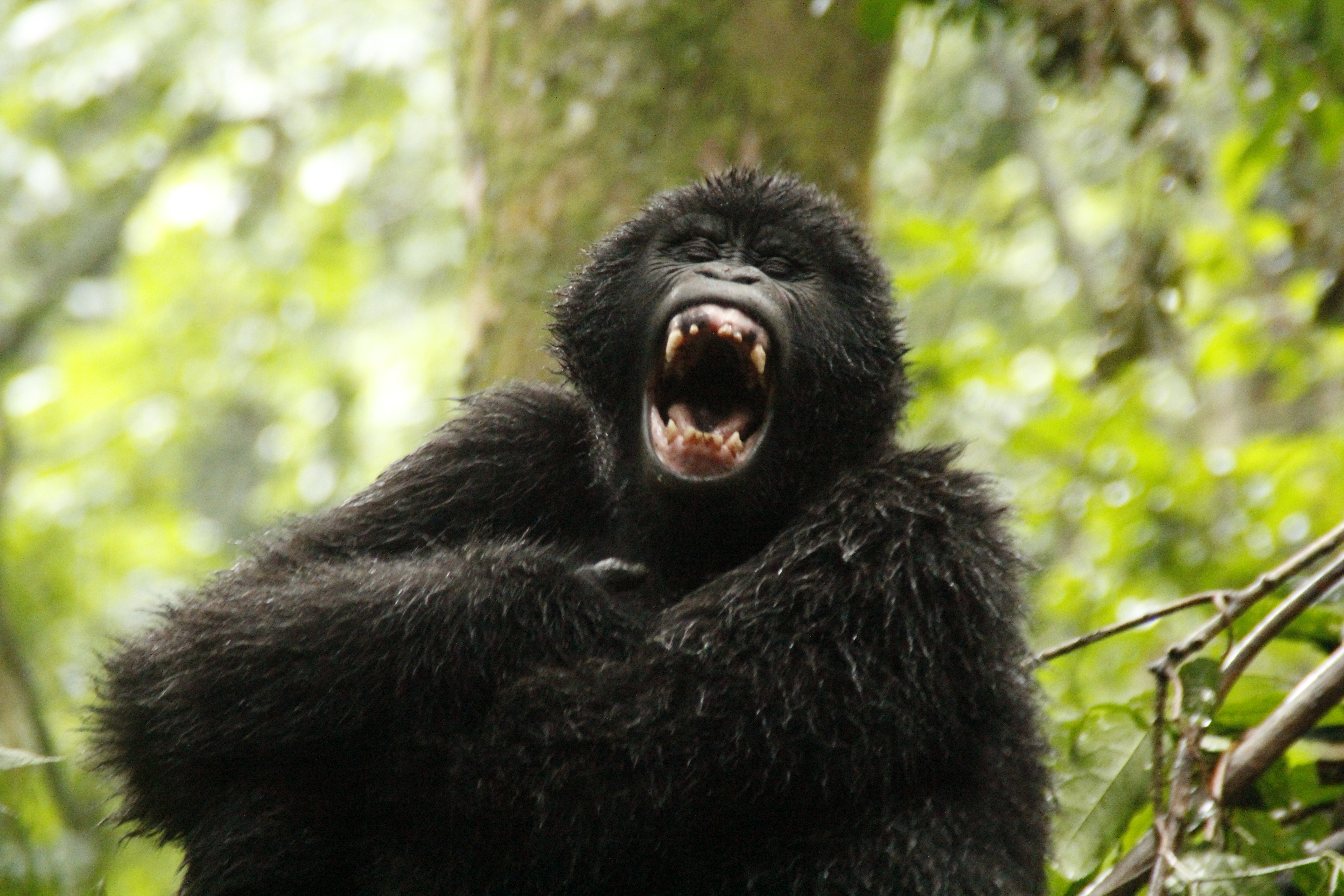 Around him were 3 younger males, one of whom walked within 3 yards of us and also a 4 year old, who aware of our being there wanted to show off by beating his chest. All of the other gorillas in the group were piling on top of each other and play fighting, it was a very wet day but they didn’t mind and were all extremely playful. A few of the highlights of the visit were when one of the gorillas attempted to grab my GoPro camera and one of the youngsters was tugging at my shorts. Excitingly I was able to capture both of these encounters on video.